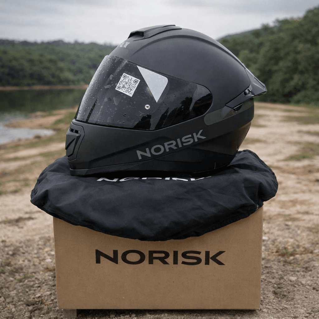 Capacete Norisk. Características: Aqui na NORISK, não seguimos o óbvio, criamos nosso próprio caminho. Então, quando dizemos que somos "descolados", é um compromisso com a mudança e a evolução constante. Estamos aqui para garantir a segurança dos nossos #noriskers. Bora fazer barulho no mundo motociclista #wemakenoise. Há muitos novos caminhos para percorrer com a sua moto e, naturalmente, você precisa de praticidade em suas aventuras. Por isso, a NORISK desenvolveu o Route, uma nova proposta "Feito para quem passa muito tempo com a moto" – Destaca o conforto e a leveza dos capacetes Norisk, ideais para longas jornadas.